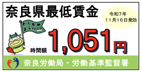 2025年11月16日から奈良県の最低賃金が従来の986円から1,051円に引き上げられます。